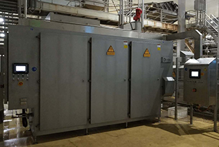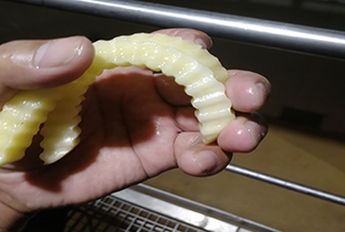 德國Elea公司的B1000脈沖電場系統,通過對產品細胞膜電穿孔化,從而使產品的結構發生變化,使較難處理的產品更加容易切割,特別適用于紅薯、土豆、芋頭等較硬產品的加工。脈沖電場系統不僅給生產工藝帶來了一系列好處,對最終的產品品質也有很大改善,處理過的產品韌性加強、表面光滑度增強,淀粉流失減少,降低了污水處理成本,產品出品率增加,對于后續油炸加工等工藝,使油溫和含油量都有明顯的降低。總之,經過PEF處理提高了產品品質的同時,也大大降低了生產加工成本。