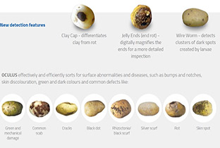 Herbert Oculus型號整薯分選機,處理產能最大至45噸/小時!以其特有的輥杠式喂料方式,實現了360度全方位的產品檢測。機器使用靈活,可選擇兩級分選或者3級分選。目前廣泛應用于麥肯等歐洲各大薯條、薯片加工廠。
